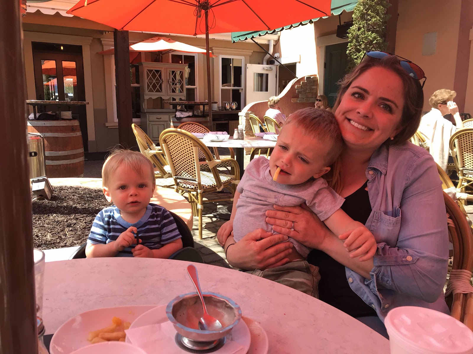 We went to lunch after seeing the horses with two of my friends. They are not married nor do they have kids. I warned them but they still wanted to do it! Both boys were soo good (despite what this picture may show).