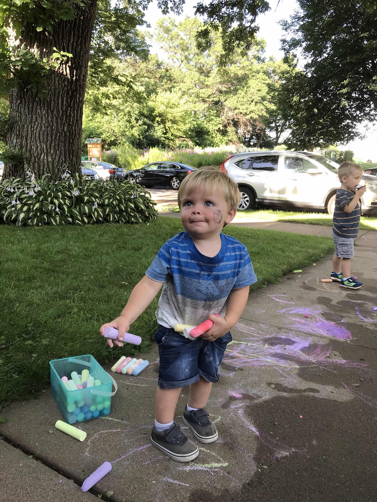 At the taco party Saturday afternoon. It was quite a weekend. Look at what a mess Charlie is 🤦🏼♀️