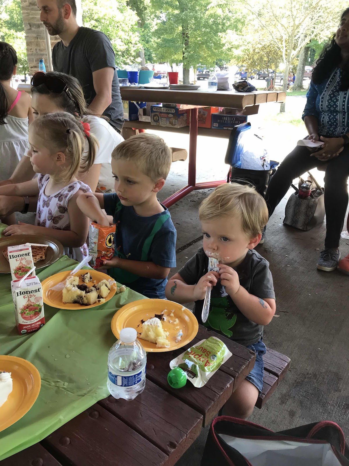 Last weekend our neighbor had a birthday party at clemynjauntry park out in McLean. It was a fun, hot time. The boys rode the carousel. Jack loved it, Charlie had mixed feelings. The park was really overwhelming for me flying solo with both boys but we made it. Pizza, cake, applesauce... lots of treats.