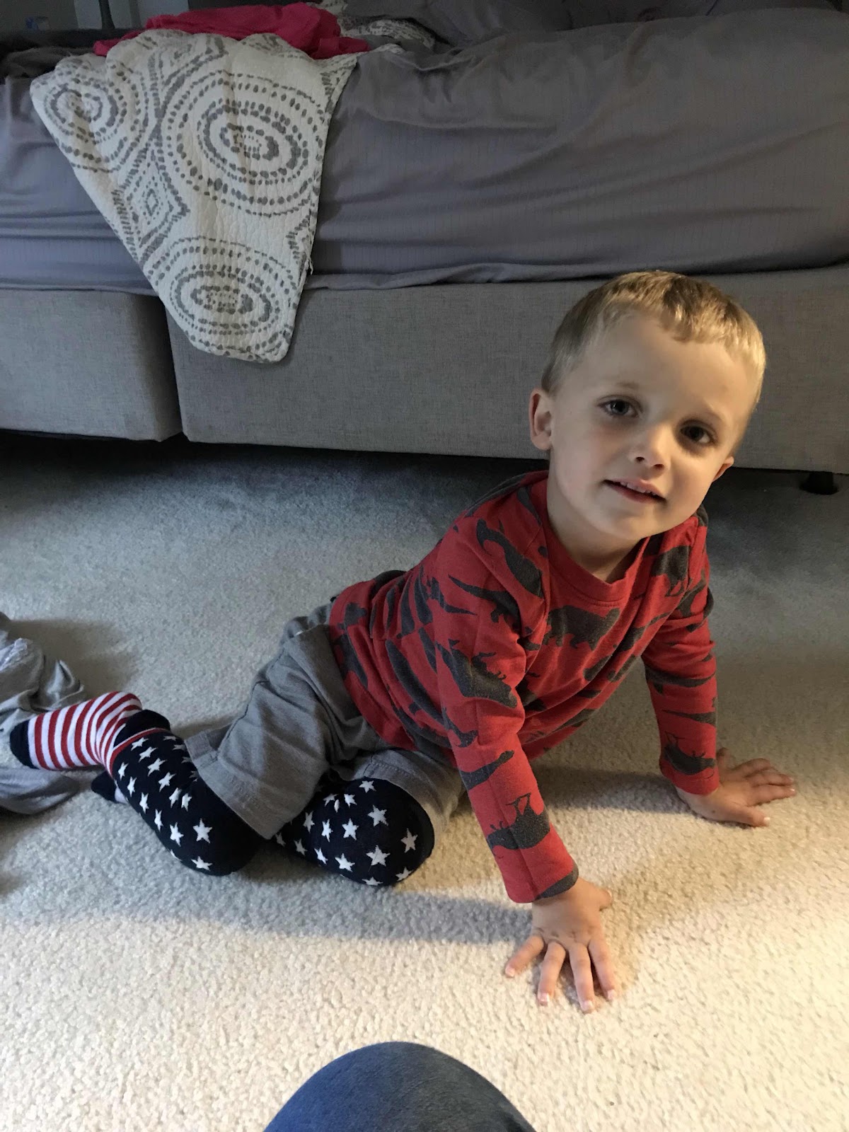 Jack was obsessed with putting these star and stripe socks on from a Memorial Day party from my work.