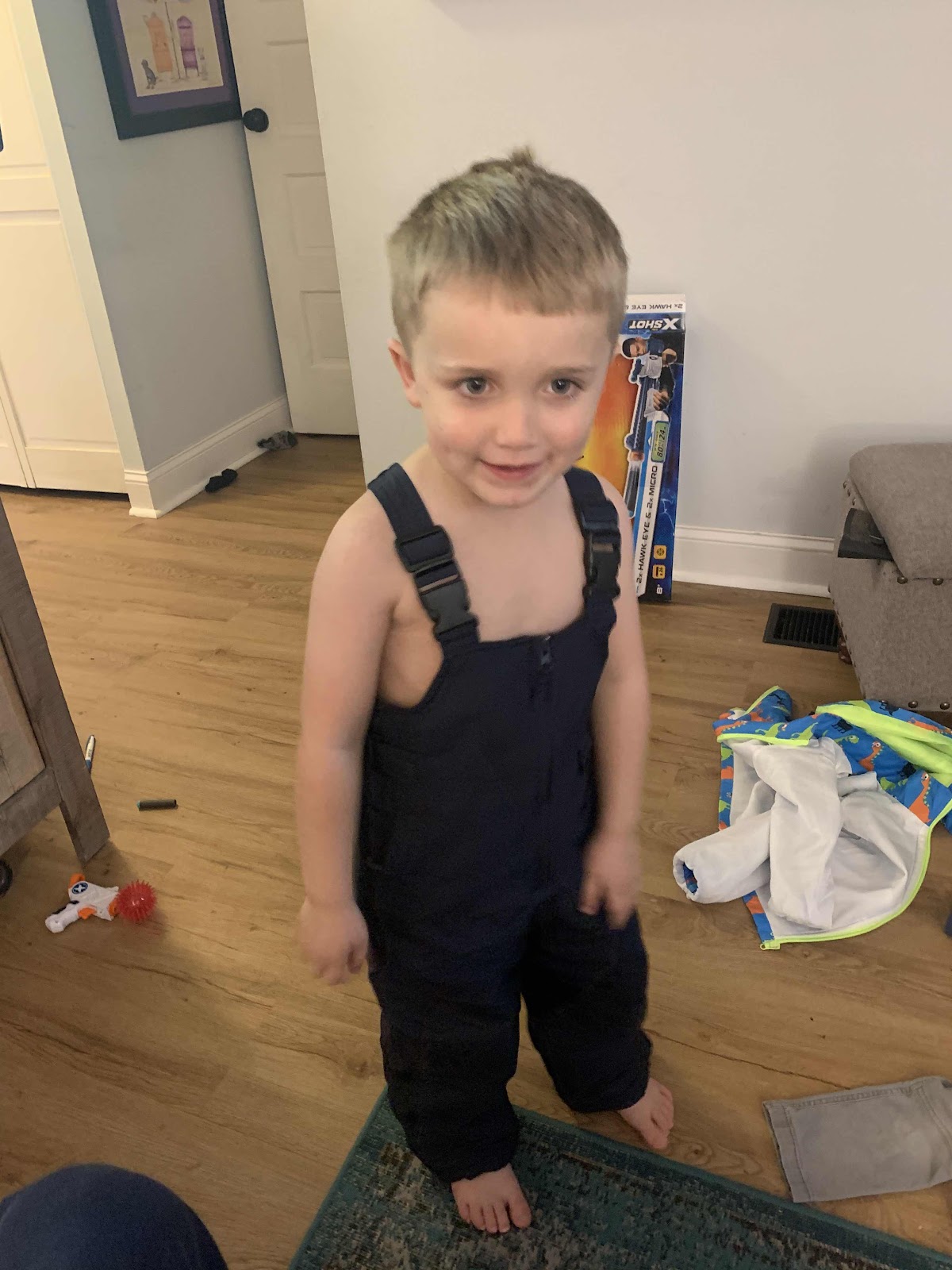 Warm bath to finish the day. Charlie was NOT into a bath and requested a shower by dad. What?