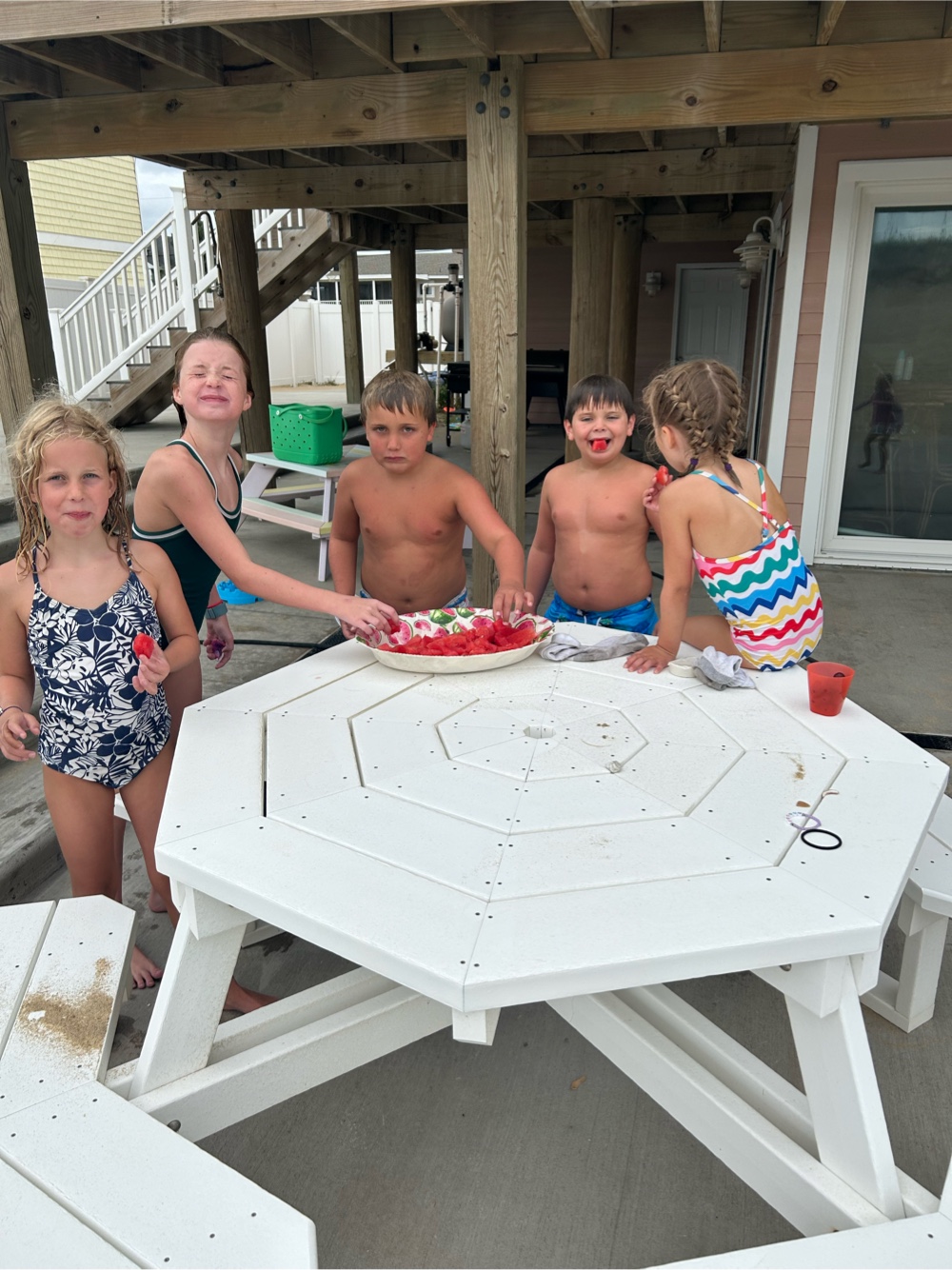 Jack with his relay team at the relay carnival! So after the relay carnival we learn which teams made it to all-stars. The tradition is they go house to house delivering the all-star caps. I did say my kids were asleep in the group chat. Well at 9:30 pm jacks coach knocks on the door. I obviously let him come up to wake Jack up to share the big news 🤣😬🫣 when he woke up he asked if it was a Dream or real life 4th of July shenanigans. Whirlpool Eating the Watermelon from the watermelon relay They’re inside a swimming cap. Didn’t know they stretched like that 😬 As the most random adventure ever we went to frying pan park. We had a coupon to ride the Ferris wheel so why not on the 4th of July? Then firework time! We had an A meet the next day so we watched u til it got dark and headed home to finish watching from The front porch. We had a relay team spaghetti dinner the day before all-stars Relay team with their coaches They were se...